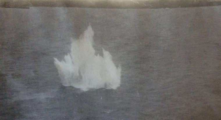 UIT-22 under attack. Pilot Officer, later Flight-Lieutenant FJ "Fred" Roddick dropped five depth charges spot on target and he crippled the submarine, forcing it to submerge. When it surfaced, Gar Nash sunk it with six depth charges