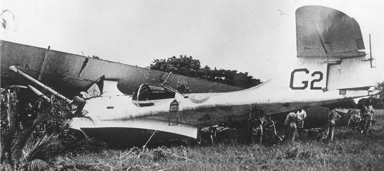 "Just before the "kill" we had a fire on board the Catalina", said Nash. "The crew was preparing breakfast at dawn. The Catalinas had two electric plates on board - but the things seldom worked. One of the primus stoves of the Clyde Cooker had a mishap and the methylated spirits burst into flames. The face of Ted Walker was severely burnt. This could have been very serious with 5 000 liters of petrol in the wings!" Walker was bandaged up with "yellow jelly" for his burns and Gar told him to relax. "Ted was then put on the port bunk for the rest of the sortie," chuckled Nash.
