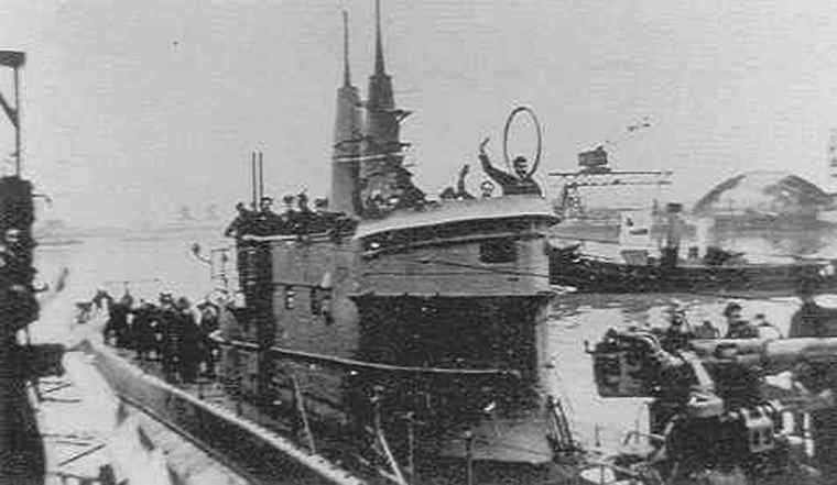 The German submarine UIT-22 leaves Bordeaux for the last time