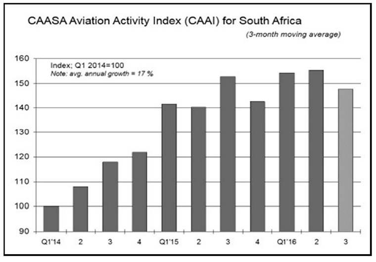 MIDWEEK UPDATE 30 NOVEMBER 2016THIS WEEK IN MIDWEEK UPDATE Notice Board…….Plan Your Weekend……..Forthcoming Events Aviation News………. Worldwide Incidents and Accidents This Week in Aviation History………Advertising Rate Card ![]() ![]() The Aviation Show Podcast now on Pilot's Post This week's Topic: AME (Aircraft Maintenance Engineer) Apprenticeships. For a recording of the life broadcast go to: www.debela.co.za/aviation-radio-show ![]() 3-4: SAC ACE of Base Vereeniging airfield. Contact Annie Boon e-mail: chunge@mweb.co.za ![]() 7: EAA Chapter 322 monthly meeting, Dickie Fritz Moth Hall Edenvale. Contact editor@afskies.co.za 7: International Civil Aviation Day (ICAD). Contact Mark Swarts e-mail: swartsm@caa.co.za Cell: 082 878 0875 12: Crete 2 Cape - Vintage Air Rally. Baragwanath 11:00 Arrive direct from Botswana. 13: Blue Mountain Valley Airport. 14: Parys Airfield 07:00 - 9:00. 14: Bloemfontein 10:00 - 12:30. 14: Gariep Dam. 15: Plettenberg Bay Airfield. 16: Stellenbosch Airfield 11:00 Grand Air Arrival. Sam Rutherford. sam@prepare2go.com www.VintageAirRally.com 28: All welcome to our annual St Francis Field fly in at FACT. Free breakfast snack and coffee for all visiting pilots arriving by air.On line or SMA Wx available. Contact Barry Culligan for details on 083 611 3333 or get info from the pilots section of our website 21 - 22: SAC Judges' Trophy Tzaneen. Contact Annie Boon e-mail: chunge@mweb.co.za 28: Rand Airport Challenge. Rand Airport. Contact Frank Eckard e-mail: frank.eckard@mweb.co.za cell: 083 269 1516 ![]() TREND IN THE CAASA AVIATION ACTIVITY INDEX (CAAI) - 3RD QUARTER 2016 During the recent Africa Aerospace & Defence Exhibition, held at Waterkloof Air Force Base, the Commercial Aviation Association of Southern Africa (CAASA) launched a composite index of the level of aviation activity in South Africa (for the second quarter of 2016). The index for the 3rd quarter has now been compiled. ![]() Summary of key trends depicted by the CAAI: 1. Despite a modest decline since the 2nd quarter of 2016, the overall index for the 3rd quarter shows that commercial aviation activity in South Africa is alive and well and outperforming most other sectors of the economy by a considerable margin. On the basis of a 3-month moving average, the CAAI has increased by more than 47% since the first quarter of 2014. This represents an average annual rate of increase of 16.8%. In comparison, the country's GDP (weighted according to the quantity/nominal value ratio of the CAAI) only increased by 4.6% per annum, on average, over this period. 2. The main drivers behind the sterling performance of the CAAI since 2014 have been the value of imports of aircraft & spares, as well as the value of exports of aircraft. This combined valued reached a level of R5.2 billion during the first three quarters of 2016, compared to R3.7 billion during the first three quarters of 2014. Growth rates for the different categories over these two periods are as follows: • Imports of helicopters: 116% • Imports of airplanes (under 15T): 46% • Imports of aircraft spares: 36% • Exports of aircraft: 38% 3. Since 2014, growth in air traffic movements (ATMs) at airports managed by ACSA has been muted, but nevertheless positive. The group index for this indicator increased by a modest 4.9% over this period. George and O R Tambo have witnessed the strongest growth in ATMs amongst the ACSA airports. 4. Growth in ATMs at key non-ACSA airports has been significantly stronger since the 1st quarter of 2014, namely 21.2%, but activity has tapered off over the past three quarters. Rand airport has been the star performer amongst this group. Rationale & methodology The rationale behind the decision to design the Caasa Aviation Activity Index (CAAI) was, firstly, the recognition of the indispensable role that commercial aviation plays in facilitating the rapid transport of decision-makers and cargo in all spheres of society. Secondly, CAASA has identified a need to contribute to the knowledge base of conditions in the domestic aviation industry by forging a number of key indicators into a composite index, weighted in terms of their perceived contribution to the general trend in commercial aviation. A total of 25 different indicators were selected for inclusion in the CAAI, classified in terms of the following seven groups: • Value of imports of helicopters • Value of imports of aeroplanes (of a mass less than 15t) • Physical quantity of imported aircraft • Value of imports of aircraft spares • Value of exports of aircraft (of a mass less than 15t) • Air traffic movements at six ACSA airports (including Johannesburg, Cape Town & Durban) • Air traffic movements at seven key non-ACSA airports In combination, the CAAI provides an objective & balanced gauge of the level of economic activity in the commercial aviation industry, compared to a base period. Due to the short-term volatility inherent in purchasing and selling aircraft, where units are small, but the currency values are high, several of the group indices of the CAAI are based on a standard statistical practice of a 3-month moving average, including the overall index. THE BREITLING JET TEAM CONQUERS AMERICA ![]() Photo © Breitling The Breitling Jet Team did some spectacular flights over some of the most legendary sites of the United States, such as the Grand Canyon, Mount Rushmore, the Golden Gate Bridge, Zion National Park and Monument Valley. The squad was able to demonstrate its expertise and professionalism by welcoming on board exceptional passengers, including Mark Kelly, a U.S. Navy veteran and retired NASA astronaut. Pilots belonging to the U.S. Navy Blue Angels and to the Canadian Air Force Snowbirds also enjoyed the pleasure of whizzing through the skies with the Breitling Jet Team - and for once in the passenger seat! “A French team flying on Czech jets and supported by a Swiss watch brand was a first for the American authorities