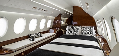 The Falcon 7X cabin is a high, wide and handsomely-proportioned executive suite- featuring three spacious lounge areas. It features the highest standards of comfort, quality and style, including an innovative environmental system with an in-flight cabin altitude of just 4,800 feet at 45,000 ft,as well as an advanced 'quieting acoustics'. Falcon tri-jets provide slower, safer approach and landing speeds. Their three-engine configuration gives peace of mind on long routes over water and uninhabited areas.
