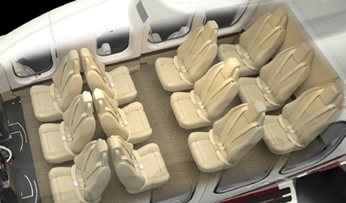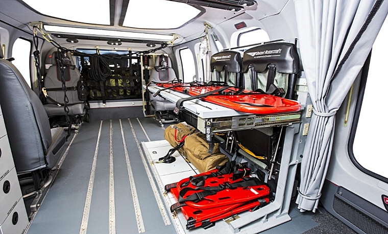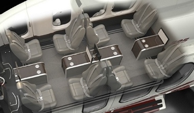 Easily reconfigurable, the Bell 525 accommodates each passenger's individual needs enabling them to quickly mobilize whenever opportunities present themselves. Three baseline interiors configurable in 8, 10 or 12 person arrangements provide the user versatile configurations to remain productive while en-route. Adaptable configurations add usefulness including table space, beverage holders, and general storage. Optional electrical outlets, stowable flat screen monitors or coolers, colour matched carpet, fresh air vents and window tint choices offer customizable touches to match the user's unique style.