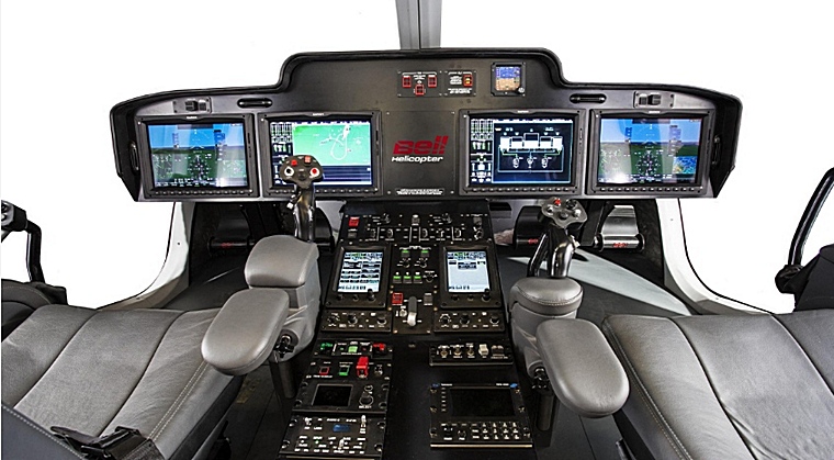 Side Stick Controls - One of a kind side stick controllers convert pilot movements into digital signals which are sent to the aircraft's flight control computers. Through digital design, the Bell 525 controls allow for a more comfortable and usable flight deck, giving crews more time to monitor the overall status of the helicopter and its systems.