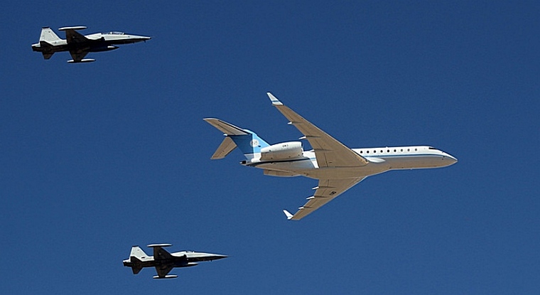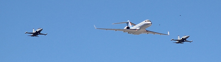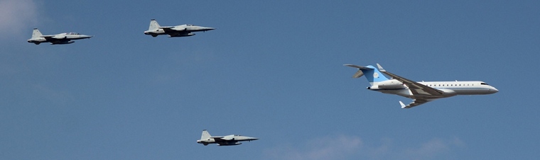 OK-1, the designation given to the presidential jet - a Bombardier Global Express - made a low flypast with a close escort of three F-5 fighters. This is always a remarkable sight, and to see it so close to the city centre makes it all the more impressive.