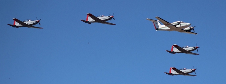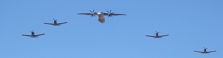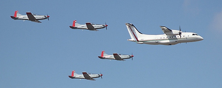 Second in line were the King Air and Dornier Do-328 with an escort of four PC-7II's in a tight V formation. After they passed the stadium, the PC-7's pulled away in preparation for their part-piece.