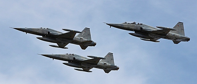 Eyes then turned south towards the specks that rapidly turned into the F-5's saying farewell with a low and fast flypast.