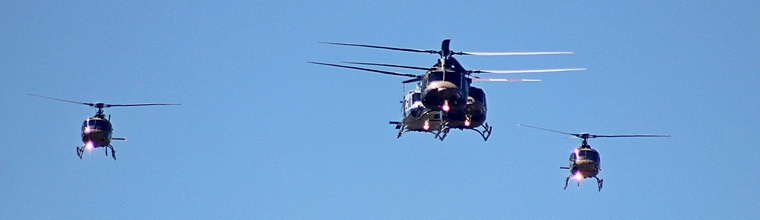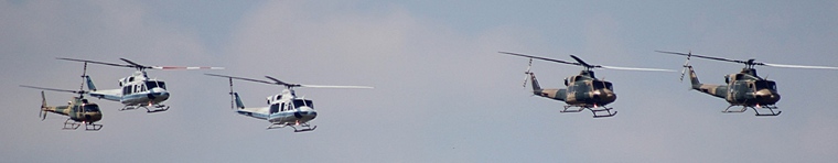 The leading group represented the helicopter force, with four Bell/Boeing 412's and two Eurocopter/Airbus Squirrels. The former included two VIP examples. As the rest of the aircraft departed the two standard 412's reappeared to do smart wingovers over the stadium.