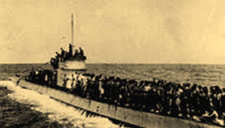 Eye witness, Italian Carlo Dominione (29), wrote: "We thought that we would be rescued when the submarine surfaced after the ship went down, but the crew fired machine guns to warn us off as we tried to swim towards it."
