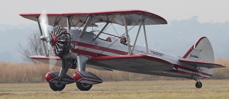 | Boeing Stearman ZU-IES joins the Airshow CircuitBy Willie Bodenstein       From this 22 January 2012…………..  to this 22 March 2015.  Ivan in the Stearman at the SAAF Museum Show Saturday 6 May 2017. Ivan's CV: · Born 9 February 1979. In Neslpruit, South Africa · Started flying at the age of 14 in 1994. Paid for flying by washing Lowveld Aero Club aircraft for 1 flying hour a month. · Soloed on 17th Birthday, 9th February 1996. · Obtained PPL in 1996. · Matriculated 1997 · Commercial pilot's License 1999 · Flew charter on C310 for Leoair flight centre in Nelspruit with Danie Terblanche · Obtained instructors rating 2000 · Obtained Airline Transport license 2001 · Joined Nelair charters 2001 · Married Sonica 2006. · Jeandre born 2007. · Joined Airquarius contracts flying F28 in 2007 · Joined Comair limited operating Kulula and British Airways 2008 · Became Captain 2017 · Total flying hours 14,000 · Some of the Aircraft types flown: B737-2/3/4/8, DC3, F28, Gulfstream 1, Learjet 25, Harvard, Pitts Special, Bosbok, Cessna and Piper series, Kingair 200, Tiger Moth, Chipmunk, SA Ravin, Aeronca, Auster and others. · Currently flying as Captain on B737-800.  Jeandre, Ivan and Sonica Boeing Stearman ZU-IES · Date of manufacture 1941. An example of over 10,000 built and fitted originally with 220hp Continental engine · Served with Evon Airforce base training US Army pilots for active duty. During her time with the US Army she had three landing incidents. · Became surplus to US Army needs in 1945 and was subsequently auctioned of together with other types. · Became a Crop duster in 1946 and was fitted with Pratt & Whitney R985 engine delivering 450hp. · 1970 she was crashed during a take-off incident and was subsequently scrapped. · Remains of aircraft imported to Bloemfontein, South Africa in 2000 · Ivan and Sonica bought the remains in 2012 and started the restoration process · First flight after restoration on 19 March 2015 · Aircraft currently resides at Petit Airfield Gauteng  The Stearman in the skies over her Homebase at Petit · Empty weight 1400. Max Take off: 2000 kg. · Engine type: Pratt & Whitney R985, 9 Cylinder 450hp · Fuel burn: 85 litres/hour · Cruise speed 180 km/h |       |