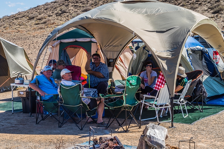 As can be seen from the photos it is a barren world, as alien to the city dwellers as can get. Most of us are not used to roughing it out like that and with a "you take out what you bring in" policy some planning was called for. Fortunately Boet is a guy who knows how to organise and some of the farmers in the area provided two screened off private facilities and plenty of water in two Jojo tanks, so one did not had to hike to the nearest bush for some needed personal care, something which could have resulted in a very long hike as the nearest bushes were a number of kilometres away. There was also plenty Karoo sheep meat available so that nobody can complain about staying hungry.
