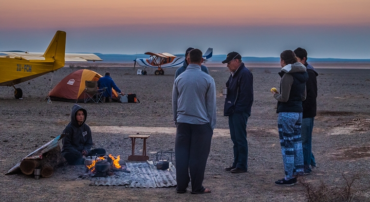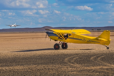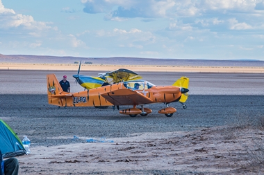 As with all aviation related events, weather planning is important, especially so if you want to visit a pan as the slightest bit of rain makes for some interesting manoeuvres on the exceptionally slippery surface. OK, the Northern Cape is not well-known for rain, but as the rain goddess would have it we saw some welcome rain in the area on the Wednesday before the weekend. Luckily the pan remained dry although a pan to the North West was totally under water.