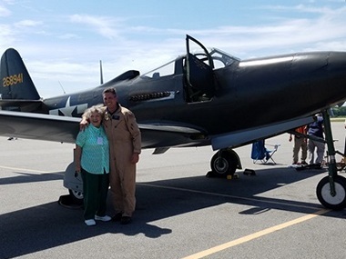 Along with the aircraft and other items on display, "Rosie the Riveter" Betty Bishop attended the event as one of the hundreds of thousands "Rosie the Riveter" women who worked on the production lines during WWII. During the early 1940s, Betty was employed at the Bell Aircraft facility where she helped manufacture the Bell P-63. She was the only woman on a team of 21 men where she focused on assembling the landing gear and bleeding and securing the brakes for the Bell P-63. This WWII Heritage Days marked a very special occasion for Betty, as at the age of 91 Betty got to see the aircraft fly for the first time since wartime.