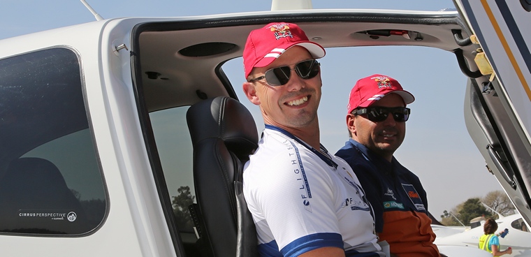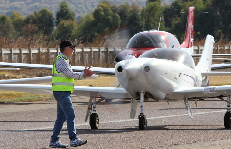 At 10.00 Robin waved Dieter Bock and Dale de Klerk in race #10 Lancair Legacy ZU-DBC with a starting handicap of 218.56 off and the race was on. Dieter and Dale eventually finished in 17th place with an average speed of 224.78 knots. On day one the fastest aircraft started first, one following the other at 30 second intervals.