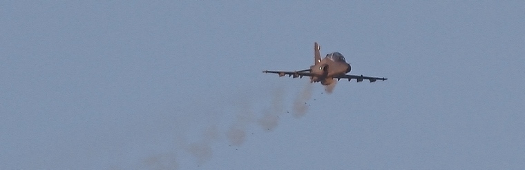 Live munitions are used during the demonstration and as the sun set the normally peaceful bombing range resembled a war zone. Bombs were dropped from the Gripens and Hawks whilst rockets were fired from the Rooivalk's whilst the ground forces repelled the attacking forces. Troops were deployed and casualties evacuated by the Oryx and Agusta helicopters.