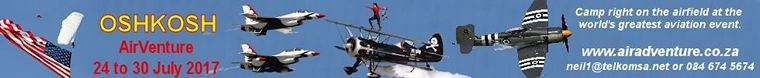 Midweek Update 7 June 2017Plan Your Weekend……..Forthcoming Events Aviation News………. Worldwide Incidents and Accidents This Week in Aviation History………Advertising Rate Card ![]() Get all your questions answered in one place. To listen to a recording of the live broadcast click on the link: www.debela.co.za/aviation-radio-show ![]() 10-11: Wonderboom Adrenaline Show. Wonderboom. Contact Chris Briers E-mail: chris@briersgroup.com Cell: 082 568 7988 10-11: EAA Chapter 1502 Ladysmith fly in. Contact Gerald Maddens zero seven two56154six nine. Two bed cottages at R500 per night including breakfast, out flights around Battlefields and more. 10: Brakpan Aero Club celebrates the opening of its new club house and restaurant this coming Saturday 10 June at Brakpan Airfield with a fly or drive in from 0800 hours onwards. ![]() ![]() 15-16: Lowveld airshow at the Nelspruit airfield Tel: 013 741 6412. Contact Willemien Hodgkinson e-mail: willemien.hodgkinson@kishugu.com ![]() 16-18: MISASA Microlight Championships and kroon Fly in. Contact Mervyn on 073 763 7510 for competition details. 17: Queenstown Flying Club Centennial Celebrations. Contact Alasdair 0825518375 mac@mactax.co.za 24: Middelburg Aero Club Airshow. Richardt Lovett. mail@pegasusi.co.za 082 771 8775 3rd Saturday of every month. Microland. Bring and braai. Fires and bykos provided. Fires start from 09h30. Contact person: Nick Swardt 082 441 8011 or Alan Hussey 072 82 2341 30-3 July: Race for Rhinos. Kubu Island Botswana.Contact Chris Briers E-mail: chris@briersgroup.com Cell: 082 568 7988 30- 1 July: SA Landing Championship Training Day - Brits Airfield. Contact Mauritz du Plessis email: whitehouse@worldonline.co.za, Cell: 083 601 1042 ![]() 5-8: SAC Nationals. Malelane, Mpumalanga. Contact Annie Boon e-mail: chunge@mweb.co.za 8: EAA Chapter 973 - Krugersdorp. Breakfast Fly-in to Crosswinds Airfield. All EAA members, Microlighters, friends and aviation enthusiasts - You are all invited to fly in or drive in to Crosswinds Airfield and enjoy the day with us. A full breakfast at R80 per head will be available, which includes coffee and tea. 8: Swaziland International airshow. Swaziland Flying Club. Contact Yorick Hulett e-mail: hulettcharcoal@gmail.com Tel: +268 760 31002 ![]() 15: Hoedspruit Fun Rally. Contact Wynand Uys email: wynand@ottersden.co.za or Frank Eckard e-mail: frank.eckard@mweb.co.za cell: 083 269 1516 3rd Saturday of every month. Microland. Bring and braai. Fires and bykos provided. Fires start from 09h30. Contact person: Nick Swardt 082 441 8011 or Alan Hussey 072 82 2341 24-30: EAA AirVenture Oshkosh. Wisconsin, USA. Camping on the airfield contact Neil Bowden e-mail: neil1@telkomsa.net or Hotels in Appleton contact Calvin Fabig e-mail: calvin@designer.co.za 28: World Precision Flying Championships - Austria. 2: EAA Chapter 322 meeting. Dicky Fritz Moth Hall Edenvale. Contact: editor@afskies.co.za 4: SAAF Museum AFB Zwartkop open practise day 5-6: SAC Judges Trophy. Tzaneen. Contact Annie Boon e-mail: chunge@mweb.co.za 5: Apiesdoring Karnaval Fly-inn Thabazimbi, Limpopo Contact: Chris Ehlers: 0823714492 Gert Ehlers: 0836526208 ![]() 11- 13: Pyramid Aviators Weekend. Contact Peter Lea: Cell No. 082 553 4908 or e-mail: peter@irricon.co.za 16-18: SAC Unlimited World Championships. Malelane. Contact Annie Boon e-mail: chunge@mweb.co.za 20: Grand Rand Airshow. Stuart Coetzee. manager@randairport.co.za. 011 827 8884 25-26: Bethlehem Airshow. Stephan Fourie. fouriesj1491@gmail.com. 072 344 9678 3rd Saturday of every month. Microland. Bring and braai. Fires and bykos provided. Fires start from 09h30. Contact person: Nick Swardt 082 441 8011 or Alan Hussey 072 82 2341 26: Zandspruit airshow. Zandspruit. Website: www.zandspruit.co.za. Contact Martin den Dunnen E-mail: martin@zandspruit.co.za Cell: 082 449 8895 ![]() ALAN EVAN-HANES NEW AERO CLUB GENERAL MANAGER ![]() Alan comes to us with a wealth of aviation experience. He has been an aviation enthusiast his entire life, frustrating teachers by drawing or day dreaming about planes throughout his schooling. He became involved in EAA in 1981, and has been a member ever since. He was manager of the Defence Force Flying Club during his national service. He served as a judge at the World Aerobatic Championships in Cape Town in 1995. His experience includes project management in a major retail bank, construction site building manager, aerospace engineering manager and as a management consultant. He specialises in stock exchange financial rules and in fraud forensics, which has taken him around the world. Alan recently volunteered his time to fly anti-poaching operations in Northern Mozambique for 3 months. Alan has held a PPL since 1989 and has been involved in a number of aircraft projects, including a twenty-year restoration of a Piper Super Cub which he shares with his ALTP pilot brother. With a Post Graduate Diploma in Business Administration with an MBA qualification he is ideally qualified and suited for the position of General Manager of the Aero Club of South Africa. Alan is well equipped to assist Aeroclub in the development of the Aeroclub in terms of our strategic planning, and fulfilling our key objectives of Promoting and Protecting Sport and Recreational Aviation. We wish Alan well in his new appointment and in return offer him our full support. A big word of thank you to Richard Becker. Richard has since his resignation as the General Manager in February 2017 availed his time to help with functions of the GM until a replacement could be appointed. We thank Richard for his contribution to the cause of protecting and promoting free flight. ![]() ![]() Photo © Brady Lane Event organizer Steve Krog said the event is intended to honour the legacy of the Cub aircraft, which have been in use for 80 years. "What it is, is a commemoration and recognition of the Piper J-3 Cub and the influence it's had on general aviation from 1937 right up until present day," Krog 