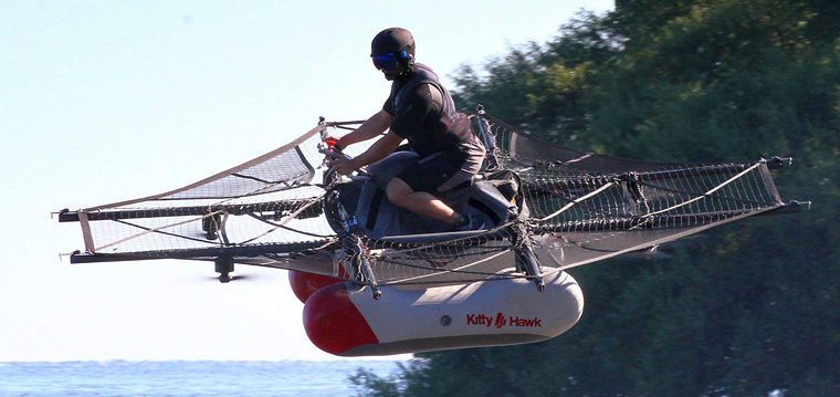 Designed to specifically to fly over fresh water the electric-powered, Kitty Hawk multicopter has been engineer, designed and build to make the dream of personal flight a reality. A safe, fun, easy-to-fly aircraft with simple controls and advanced electronic capabilities one can learn to fly in minutes and will according to the manufacturers, backed by Google's Larry Page, give everyone access to personal flight and will open a new, limitless world of opportunity.