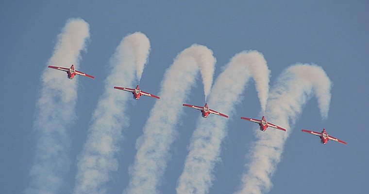 The Canadian Air Forces Snowbirds are always something to see. Officially known as the Canadian Forces 431 Air Demonstration Squadron, the Snowbirds that were formed in 1978 is Canada's military aerobatics or air show flight demonstration team. In September 1961 the Canadian government ordered 190 Canadair CL-41 Tutors. The Tutor that had its first flight on 13 January 1960 was the product of the Canadair Preliminary Design department went to serve for over thirty years as the primary trainer of the RCAF. In 1976, the Canadian Forces modified 113 remaining aircraft with upgraded avionics and provisions for two belly-mounted 41 US gal (155 l) external fuel tanks. Modifications for the Snowbirds include a smoke generating system, a unique paint scheme for added crowd appeal and a highly tuned engine to enhance engine response in low-level flying.