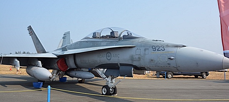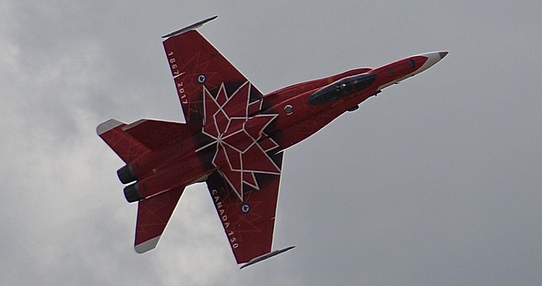 The Canadian Air Force CF-18 Hornet in Canada's 150th Sesquicentennial Anniversary colours.