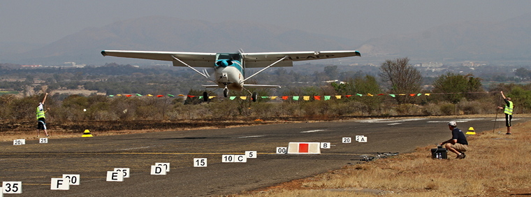 With 6 pilots competing and two of the aircraft flying more than once with different pilots, there were 3 rounds of 2 aircraft in the circuit doing their 4 allotted landings one after the other, first up was Mary de Klerk and Ron Stirk in Round 1, Rob Jonkers and Hans Schwebel in Round 2, Thys vd Merwe and Frank Eckard in Round 3.