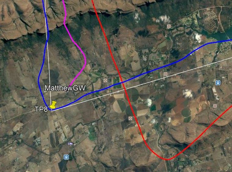 The route was planned to go out north, into familiar territory for the Grand Central based crews as most of the legs were in their training backyard. The start and finish points were just north of the N14 in the narrow Special Rules corridor between the Waterkloof & Lanseria airspace, and from there the route went out past the red and white radio mast, up through to Soshanguve, west to the fork-end tip of the Roodekopjes dam, then south through granite quarrying territory, across the Maglies northern ridge, then east across the Hartebeepoort dam, then south to the finish point being an obscure dust road and creek crossing.