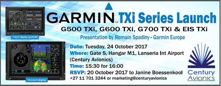 MIDWEEK UPDATE 11 OCTOBER 2017Plan Your Weekend……..Forthcoming Events…….Aviation News Worldwide Incidents and Accidents……This Week in Aviation History ![]() We are not aware of any events planned for this weekend. ![]() ![]() 21 Durban Wings Club Fun Rally. Virginia Airport. Frank Eckard 083 269 1516 frank.eckard@mweb.co.za. 3rd Saturday of every month. Microland. Bring and braai. Fires and bykos provided. Fires start from 09h30. Contact person: Nick Swardt 082 441 8011 or Alan Hussey 072 82 2341 24-26: African Airshow. Kotoka International Airport Ghana. Contact Jade Myburgh at +971 2 4192714 Website: www.africanairshow.com 27,28 & 29: Oudshoorn Aeroclub Fly in. Braais, Fly-outs, live music, free shuttle service no landing fees and discount on Avgas. Contact Morne Jonker 062 429 5614 mornejonker @rocketmail.com 27-29: Palala Boutique Game Lodge weekend fly in. Directions 06/24 Airstrip is 1200 meters long, with 150 meters paved with hard rolled gravel in between 2700 ft. above sea level. S23 06 16 E027 52 49. Contact Elizabeth Olivier E-mail: marketing5@fusionhotel.co.za Cell: 072 320 4406 or resrevations@palala.co.za ![]() 1: EAA Chapter 322 meeting. Dicky Fritz Moth Hall Edenvale. Contact: editor@afskies.co.za ![]() 4: Aero Club of South Africa annual awards evening. Contact: Sandra Strydom Tel: 011 082 1100 E-mail: office@aeroclub.org.za 4: Volksrust Breakfast Run. Braai and Hangar dance. Overnight at one of the guests houses. A shuttle service will be available. Please RSVP Robert Jacobs at Whatsup 082 907 4917 and indicate whether you will need Mogas and how much. 11: Peter Hengst Memorial Adventure Rally Brits EAA Adventure Rally-Brits. Contact Rob Jonkers 082 804 7032 rob@aerosud.co.za for Rally information and entries and Trixiie Heron editor@afskies.co.za for EAA 18: Baragwanath Fun Rally. Contact Frank Eckard 083 269 1516 frank.eckard@mweb.co.za 3rd Saturday of every month. Microland. Bring and braai. Fires and bykos provided. Fires start from 09h30. Contact person: Nick Swardt 082 441 8011 or Alan Hussey 072 82 2341 ![]() ![]() 2-3: SAC Ace of Base Vereeniging. Contact Annie Boon E-mail: chunge@mweb.co.za 6: EAA Chapter 322 meeting. Dicky Fritz Moth Hall Edenvale. Contact: editor@afskies.co.za 9: SAAF Silver Falcons 50th anniversary airshow. AFB Langebaanweg, Western Cape. 28: FACF Fly in. ST Francis Airpark. Reserve date of 29 December in case of bad weather. All welcome, food and beverages will be available. Contact Barry Culligan mailto:barry@otto.co.za ![]() The Aviation Radio Show; get all your questions answered in one place. To listen to a recording of the live broadcast click on the link: www.debela.co.za/aviation-radio-show ![]() AMERICAN LEGEND INTRODUCES SUPER LEGEND XP ![]() Photo © American Legend Aircraft. The Super Legend XP (eXtra Performance) is now available as an E-LSA or EAB. Enhancement modifications include square wing tips, extended flaps and ailerons, 40-gallons-usable fuel tanks, and more. Stunning slow speed characteristics, higher top speed, and greater control authority are the result of the wing modifications. Extra fuel capacity allows for longer roundtrip/backcountry flights without a fuel stop. But that's just the beginning of what the Super Legend XP has to offer. ![]() Coupled to the extended landing gear are Acme Aero Shocks. These cutting-edge shock absorbers enhance comfort and control during taxi and landing. Acme Aero Shocks regulate rebound and compression with great efficiency. The company's proprietary system is NASCAR, F1 and Baja Racing tested and proven. A range of tundra tires-sized from 8.50 to 31 inches-is matched with Grove wheel/brakes on the Super Legend XP. Plus, there's a choice of heel or toe brakes. A new T3 Tailwheel Suspension System replaces the customary static leaf spring with a dynamic coil spring. With shock absorption that's neither abrupt nor too yielding, the T3's coil over shock is tuned to provide impact cushioning and limit rebounding. The T3 works with Scott and ABI baby bushwheels. With its Super Legend, American Legend Aircraft Company brought high performance engines to the Cub platform. The Super Legend with a 115-hp Lycoming O-233 increased the aircraft's power-to-weight ratio to the equivalent of a 150-hp Piper Super Cub. Adding a Titan engine to the Super Legend HP increased power even more. "There's a cosmetic benefit too. The XP looks bigger, larger, and heavier. More importantly, the performance goals we achieved met all my expectations." Other accomplished pilots who favor the Legend Cub are well-known performers such as Bruce Bohannon, Frank Knapp, and Greg Koontz. Piper Aircraft, Inc. will promote its economical, top of the line M-Class product line up at the upcoming National Business Aviation Association's Annual Meeting and Convention. Executives from Piper Aircraft will attend the event along with its dealers and sales agents, to be held October 10-12 in Las Vegas. "The NBAA Convention provides a great opportunity to promote all three of our M-Class products to a wide range of business aviation operators. Each aircraft, from our single-engine piston pressurized to the single engine turbo prop offer advanced safety features, competitive acquisition costs as well as low operating costs. Our flagship product, the M600, with its significant payload and range is proving to be the ideal jet stablemate for a corporate flight department," said Piper's Vice President of Sales, Marketing and Customer Support, Ron Gunnarson. ![]() Prominently positioned on static display at Henderson Airport will be Piper's flagship product, the M600, as well as the single-engine turboprop M500, and the pressurized single-engine piston-powered M350, which comprise the Piper M-Class in its entirety. In addition to the static display, the Company will have a full size mock-up of the Piper M600 at the Las Vegas Convention Center. About the M600 The M600, the most advanced and capable aircraft in Piper's M-cla