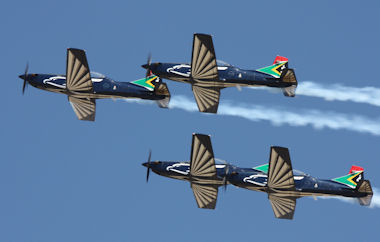 The Bethlehem Air Show hosted on the 1st of September 2012 had something for everyone to see. The air show acts on the day were more than we could have asked for and included the Eqstra Harvard team, The GoodYear Pitts Special team, The Gabriel Pitts Special team, Neville Ferreira in his Yak 55, Brad Bennetts in his Extra 300, The Silver Falcons in their PC-7 Astra's, Shark in a SAAF Hawk, Pierre Gouws in a L-39 and also led a three-ship T28 formation, Mike Weingartz in an Impala and South Africa's best - Nigel Hopkins in his MX-2.
