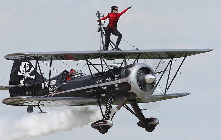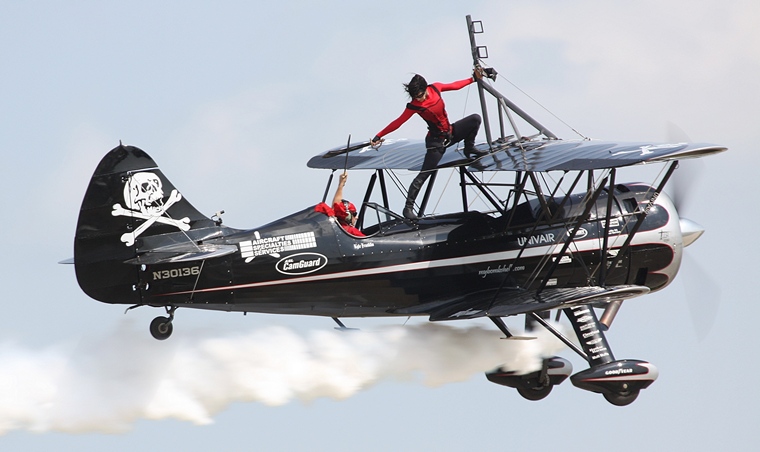 Kyle had big shoes to fill and he filled them well. He was after all well-equipped; he had already mastered wing walking, the motorcycle to airplane transfer, the Cub Comedy routine as well as flying the Jet Waco.