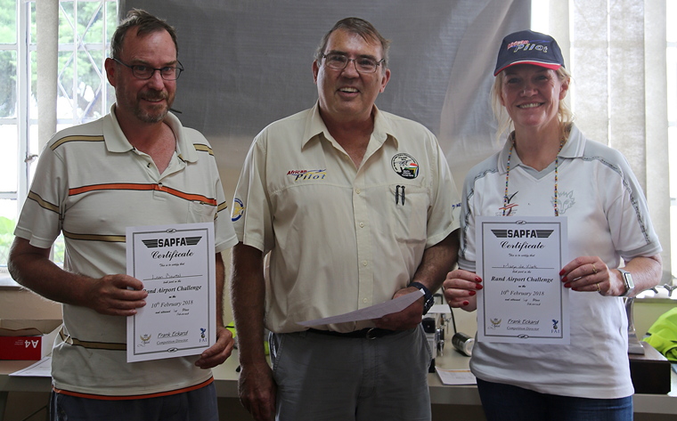 Dare to Excite-the SAPFA Rally at Rand Airport 2018By Cally Eckard , Rob Jonkers, Cheryl Smit and Willie BodensteinSaturday was organiser Frank Eckard's 14th Rand Airport Challenge. Reminiscing that when he first starting organising these events only 14 years ago, Frank used to have to bring along his desktop computer with a 386 processor, and a cathode-ray monitor, and photos of turn-points and enroute were taken with an SLR camera with a roll of film, and each competitor received an envelope with actual photos inside. Needless to say, that was a costly exercise, and took a great deal of time to organise. Nowadays a laptop and Google Earth are his tools of trade.The participants and organisers of the Rand Rally. ![]() Competitors listening attentively to Frank during the briefing. Rand Airport waived landing fees for all the aircraft that took part, and ATC made a safe, smooth and efficient start possible. Some of the competing aircraft. Twelve teams participated, in three categories - Fun, Advanced Fun, and Advanced. Besides the usual selection of Cessna's, there was also a Piper 28B, four Slings, and a Robinson 44, to provide variety. The helicopter incurred penalties when it moved backwards when it arrived too early for a turn point, something which one doesn't normally see when only fixed wing aircraft take part! ![]() The only helicopter entry crewed by Marc Krauss and Taryn Pucjlowski. Teams consisting of pilots and navigators who both have their colours flew in the Advanced Class, Protea pilots Ron Stirk and Thys van der Merwe decided to give Pilots Post photographers Cheryl Smit and Willie Bodenstein a taste of rally by roping them in as navigators for their respective teams. They therefore made up the "Advanced Fun" Class. Cheryl pronounced that she is now "hooked" on the sport and now understands the attraction pilots feel towards it. Cheryl's and Thys's zero penalty points logger route superimposed on the actual track. "Arriving at Rand at SAPFA to photograph and report on the event, I never imagined I could have been roped in to navigate in the advanced fun section with the extremely experienced retired SAA captain Thys van der Merwe." Cheryl said. "Fifty one minutes in the air surrounded in the cockpit with maps and photographs identifying turning points and pre-photographed landmarks, the 51 minutes felt like five minutes in the air. Much respect to the rally pilots and navigators for their skill required during the rally. Thank you Thys for allowing me the opportunity to participate and although a flawless route flown with zero penalties we were penalised for failing to identify two of the leg photographs. But I will gladly accept second place in the class." The course and path map navigated by Cheryl Smit and Willie Bodenstein in the Advanced Fun Class. "When I was told that I was to crew as navigator for the legendary Ron Stirk, a previous world precision flying champion, I was apprehensive but at the same time excited. Having reported on rallies for the last eight years I have never had the opportunity to share the cockpit during a competition and I was amazed at the workload required to fly and navigate the course. Firstly one has to nominate a flying speed and plan the route on the map issued before the flight but one must make sure that one will be able to arrive at the various turn points on the time. To complicate things even more there are a number of photos of landmarks, sourced from Google maps, between turn points that must also be identified and marked on the maps at the exact position spotted. We found all the turn points and only missed one photo, all thanks to Ron's amazing skill as a pilot." ![]() Pierre and Francois van der Merwe finished 4th in the Fun Rally Class. ![]() Colin de Paiva and Sean Russel were placed 5th in the Fun Rally Class. Fist timers Rhys Joseph and Andrew Segeren finished 6th place in the Fun Rally Class. Caroline Koll and Milan Daniz were placed 7th in the Fun Rally Class. An in-flight perspective by Rob Jonkers This year's Rand Navigation Challenge was the first fixture where the new international standard FAI rules were tested for the experienced crews. Our own Frank Eckard was tasked by the FAI to redesign a common set of rules for world competitions, with three guinea pig teams to try it out on. Thus the advanced class had a totally different set of rules to fly than the fun teams, although the route was the same for both. In the advanced class we had 20 leg photos to identify along the route, provided in a jumbled order, and turning point photos that could be correct or incorrect, and orientated in any direction. ![]() Martin Plotting the route. The map provided was blank and coupled with a task sheet, the plot had to be done in the aircraft with a 40 minute time period prior take-off, and between Martin and myself we could complete 2 maps with the route information before getting airborne and prepare the cockpit with the photos, although did not have sufficient time to study the photos and their likely map locations. ![]() The Cockpit prepared with the turning point and 1st set of 10 leg photos. The start point was an easy interchange next to South gate, and the first turning point was the unmissable Orlando cooling towers, from there the route became tricky, with the first incorrect turning point photos becoming evident, then a real curved ball at turning point 4, which was an easy to follow leg along the R28 where the photo provided was in fact an intersection before the real turning point, where I wondered how did we arrive at this point so early, and was fooled into believing the photo was correct, where it in fact was not, and only realizing the mistake when nothing much lined up on the next leg, and of course got to the next turning point too late. Thus, a very simple mistake cost us dearly in the navigation points, and I guess we would have missed some leg photos too. At least after this we recovered well, but the leg p