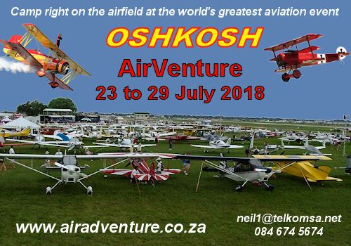 MIDWEEK UPDATE 14 FEBRUARY 2018Plan Your Weekend……..Forthcoming Events…….Aviation News Worldwide Incidents and Accidents……This Week in Aviation History 17: Rustenburg (FARG) Breakfast Fly-In . ![]() ![]() 3rd Saturday of every month. Microland. Bring and braai. Fires and bykos provided. Fires start from 09h30. Contact person: Nick Swardt 082 441 8011 or Alan Hussey 072 82 2341 21 to 25: Armed Forces Day Kimberley. ![]() ![]() 3: SAAF Museum AFB Zwartkop open practise day. Officer Commanding - Museum oc@saafmuseum.org.za 012 351 2290 3: Durban Wings Club Fun Rally. Virginia Airport, Airport Street, Durban North, 4051, South Africa (map). Contact: Mary de Klerk maryd@expandingbranding.co.za 8: EAA Chapter 322 meeting. Dicky Fritz Moth Hall Edenvale. Contact: editor@afskies.co.za ![]() 9 to 11:Aero Club of South Africa air week at Middleburg airfield. Contact Alan Evan-Hanes E-mail: alan@aeroclub.co.za. Kindly follow this link and complete the RSVP form, to indicate your intentions to attend the Airweek from 9 to 11 March 2018 at Middelburg. https://goo.gl/forms/lgvAlo1sUSu2ugjt2 3rd Saturday of every month. Microland. Bring and braai. Fires and bykos provided. Fires start from 09h30. Contact person: Nick Swardt 082 441 8011 or Alan Hussey 072 82 2341 25: Piet "Vlieg" Smit Memorial Fly In. Aviators Paradise . 31: Rand Airport Adventure Fun Rally. E-mail: rob@aerosud.co.za cell: 082 804 7032 ![]() ![]() 4 to 11: Stars of Sandstone at Sandstone Estates Ficksburg .Contact Louise Norton E-mail: sandstone-Estates-Pty-Ltd@mail.vresp.com 7: Ermelo Airshow Contact Andre van Rooyen E-mail: tolderia@gmail.com Cell: 082 417 0174 8: SAAF Museum AFB Zwartkop open practise day. Officer Commanding Museum oc@saafmuseum.org.za 012 351 2290 7 to 8: Sport Aerobatics Western Cape Regionals Swellendam. Contact Annie Boon E-mail: chunge@mweb.co.za 2-14: SAPFA Rally Nationals and Fun Rally - Brits Airfield. Contact Frank Eckard e-mail: frank.eckard@mweb.co.za cell: 083 269 1516 ![]() 3rd Saturday of every month. Microland. Bring and braai. Fires and bykos provided. Fires start from 09h30. Contact person: Nick Swardt 082 441 8011 or Alan Hussey 072 82 2341 28 - 28: Uitenhage Wings & Wheels Festival Lourens Kruger lmk@telkomsa.net 082 320 2615 27 April to 1 May: South African Canopy Piloting National Championship 2018 will be hosted by the CP Committee at Pretoria Skydiving Club in Gauteng from. 27 April - 1 May 2018 NAC Fly Away; the 10th Fly Away to be staged by NAC Contact Deneys Potgieter deneys.potgieter@nac.co.za or Mobile 082 891 4354 27-29: EAA Convention, Vryheid Airfield. For more information see the lead item under Aviation News. Or got to rsvp@eaa.org.za to register your attendence. 28: EAA Convention Adventure Rally. Contact Rob Jonkers e-mail: rob@aerosud.co.za cell: 082 804 7032 ![]() 2: EAA Chapter 322 meeting. Dicky Fritz Moth Hall Edenvale. Contact: editor@afskies.co.za ![]() 12: Sheila Taylor Fun Rally - Krugersdorp Airfield. Contact Frank Eckard e-mail: frank.eckard@mweb.co.za cell: 083 269 1516 11 to 13: Battlefields Country Lodge Annual fly-in. Website: www.battlefieldslodge.co.za Contact Dave O'Halloran Tel 079 496 5286 E-mail: gm@battlefieldslodge.co.za 12 : Lowveld Kishuga Airshow Willemien Hodgkinson willemien.hodgkinson@kishuga.com 079 499 5733 or monica.fourie@kishugu.com Cell: 083 619 3597 16 to 18: Drone Con 2018 Vodaworld Centre in Midrand. Contact Gisela Kirsten e-mail: gisela@dronecon.co.za 19: Swellengrebel Flying Club 60th birthday fly-in. Contact Pieter Venter E-mail: pventer@vgv.co.za 19 & 20: SAC Free State Regionals Tempe airport Bloemfontein. Contact Annie Boon E-mail: chunge@mweb.co.za ![]() 24 - 26: SAPFA President's Air Race. Website: www.sapfa.org.za E-mail: Race@sapfa.org.za. Race director Robin Spencer-Scarr: E-mail: robin@stylegroup.com.au. Contact Robbie Myburgh E-mail: roblena@mweb.co.za Cell: 083 377 0925 or 26: Matsieng Airshow. Contact Riaan van Vuuren E-mail: riaan@gir.co.bw Tel: +26 771 66 1201 ![]() The Aviation Radio Show; get all your questions answered in one place. To listen to a recording of the live broadcast click on the link: www.debela.co.za/aviation-radio-show ![]() As we will be planning the required facilities based on the expected participation, we ask that you please register your intentions in order that we can plan as best possible for your needs. This year, we will include an Air Display, great Information Forums, Competitions and an opportunity to socialise with fellow members and aviation enthusiasts. We would like to make all the arrangements, and ensure that we plan for your participation as best possible. In order for us to do this, we would appreciate you indicating your intentions by pre-registering. This allows us the opportunity to plan for catering, space, camping, etc. In return for registering.... THE CHANCE TO WIN A TICKET TO OSHKOSH! (Thanks to Neil Bowden) 1) Entrants must be valid EAA Members as at 27April 2018 (email rsvp@eaa.org.za should you wish to sign up as a member) 2) Pre-register & attend EAA Convention the Convention in Vryheid 3) The draw will take place at The Awards Dinner at the Convention 2018 in Vryheid. ZENITH STOL CHAMPION! We also congratulate Chris Anderson for taking second place with his Zenith STOL in the national competition. Deane's STOL CH 701 "Sky Jeep" is powered by a 130-hp Viking engine (Honda auto conversion) and Chris Anderson's Zenith STOL is powered by a 120-hp Rotax 912ULS "big bore EFI" engine. Deane Philip of Christchurch, New Zealand, has been flying for five years and has logged 570 hours in his Zenith STOL over that time. Asked how he practiced for the STOL competition, Philip explains that "every take-off and landing is a focused precision attempt. All of my flying is off-airport and the places we land and take-off from you need to be on point. Even when leaving and arriving at my home field I use the runway threshold line as a target point to continually hone my skills. An av