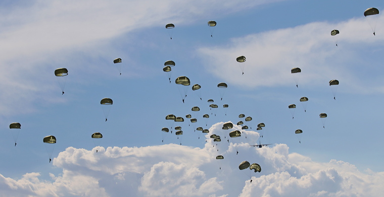 Additional reinforcements were parachuted onto the battlefield when a large force of paratroopers joined the battle after having parachuted from a C130. Additional supplies were also para-dropped to supply the forces on the ground.