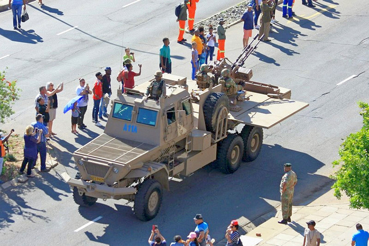 The demonstration formed part of the annual defence force week, which this year was hosted in the Northern Cape by the City of Kimberley. A total of 6 525 SANDF members participated along with 41 aircraft from SA Air Force, 222 specialised vehicles, 374 operational vehicles, 66 buses and 60 motorcycles. SA Air Force (SAAF) aircraft that participated included the Hawk and Gripen, Lockheed C-130, CASA 212, a King Air, Rooivalk, Agusta A109 and BK 117 helicopters as well as Pilatus PC-7 trainers flown and displayed by the Silver Falcons.