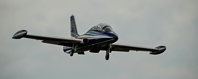 Scale and modern sport jets were present on the day and pilots flew from early in the morning with mostly over clouded conditions all day. First of these scale R/C jets was the Aermacchi MB-339 Frecce Tricolore, a crowd favourite, with the R/C pilot that flew superb displays during the day with very good presentation in the sky.