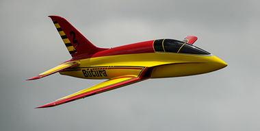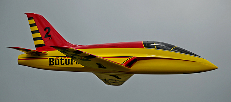 Another new sport jet to make its appearance at these events was the large Butura in yellow and red livery. An 18kg thrust Kingtech turbine usually powers these big jets. The Kingtech turbine is a favourite among most R/C jet pilots nowadays due to cost, reliability and after-sales service. This sport jet also presented very well in the air and moves smoothly through the sky without any hassles.