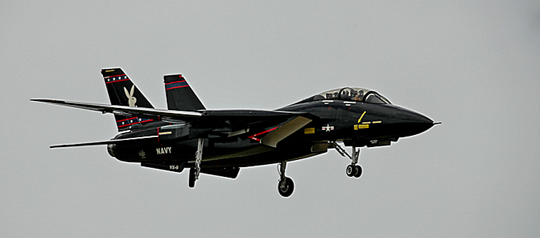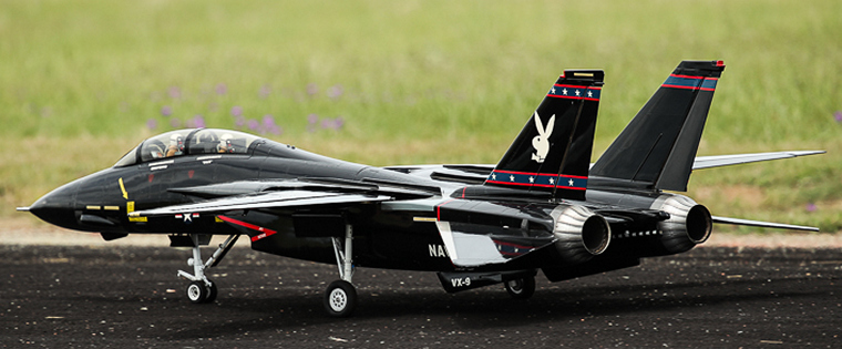 One R/C jet that created a lot of interest among the R/C jet pilots was the black 22kg F-14 Tomcat from Dirk Visser. Powered by two Jetcat 160 turbines and burning 8 litters of jet fuel during 8 minutes of flight. A toothed-belt mechanism built into the fuselage mechanically swings the wings during flight from straight to swept-back. He unfortunately experience undercarriage malfunction after take-off and he tried to recycle the undercarriage during flight without any success. On landing the right-wing wheel misaligned completely, but the big R/C jet, was brought to a controlled standstill with minimal damage to the aircraft itself. Undercarriage improvements are already in sight and an alternative shown at the event after the incident.