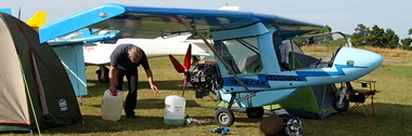 My attention was immediately drawn the Niel Bowdens tented city, a miniature version of "Camp Plakkersfontien" at Oshkosh in Wisconsin, USA, the permanent base of the EAA of the USA. Niel told me that have 180 confirmed bookings for the annual migration of South Africans to the world's largest fly in.
