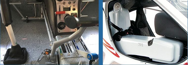 Hand controls are fitted in these light sport aircraft to allow them to be flown without the use of legs. Auxiliary fuel tanks are also installed in the wings and in the cockpit for the longest legs.