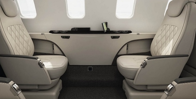 With the only 8-seat double-club configuration in the category, meet as you would on the ground in a boardroom like no other. The cabin of the Learjet 75 business jet is in a class of its own, designed for ultimate comfort and privacy: flat floor for ease of movement. As the only light jet to feature a pocket door between the cockpit and the cabin, you'll enjoy the quietest and most private ride. Step up into an unmatched light jet experience.