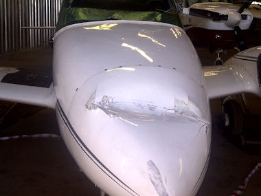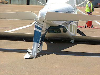 Never mind tie down ropes, metal tie down chains were broken by the wind. Two aircraft, a Cessna 206 and a Cessna 172 were turned on their backs while many other aircraft sustained damage as the wind moved them around. A Piper Twin Comanche was also damaged when a hangar door collapsed on it while it was parked inside the hangar. Generally hangar doors are supported to prevent doors from falling inwards and this must be an indication of the wind's strength.