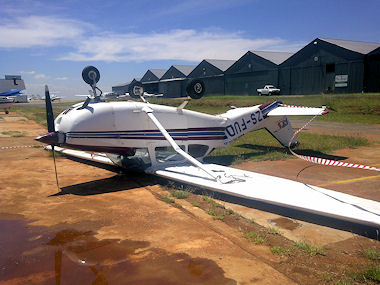 Between 21:00 and 22:00 on the 22nd of February 2012 a storm with severe gusting winds created significant damage to aircraft and hangars at the Grand Central Airport in Midrand. During the early hours on the 23rd of February the area was cordoned off while the CAA, SAPS and airport management assessed the damage.