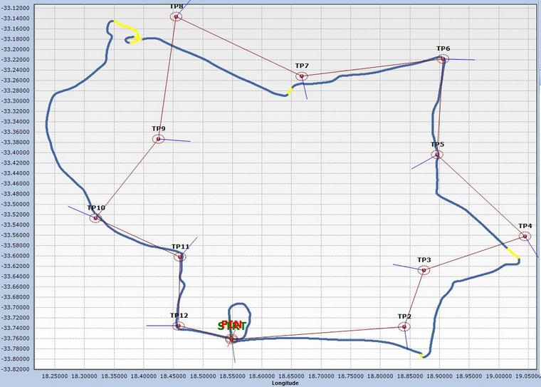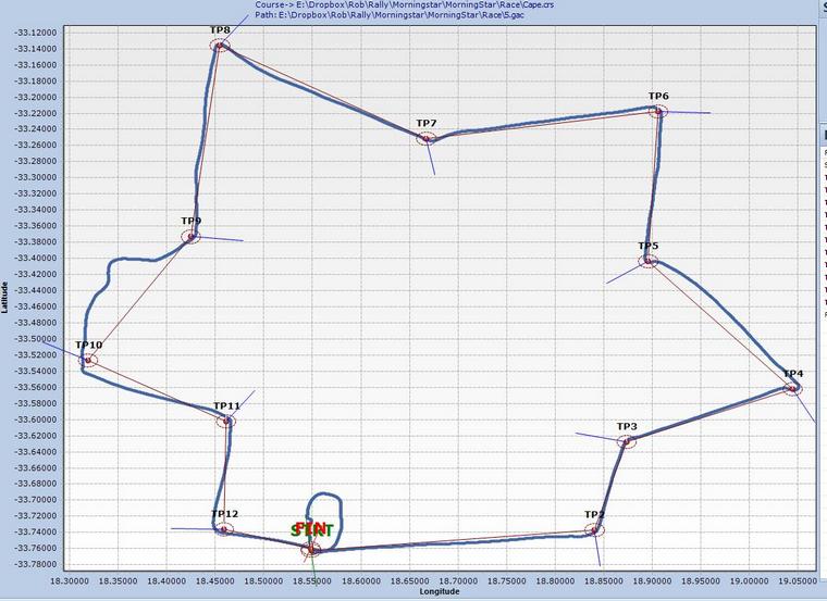 The turn points were challenging to find and it seemed turn points 2 & 4 were missed by many. Turn point 4 had its corner cut by many and although crews were briefed to take care to go round the turn points.