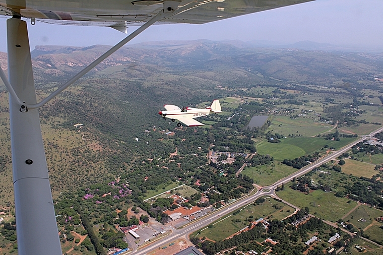 With the breakfast safely on board, it was time to head home to Krugersdorp. I had earlier chatted to Dale de Klerk and asked if he would mind that we do some air to air photography on our way back with him and his CA61 - Mini Ace. I was thrilled that he agreed!