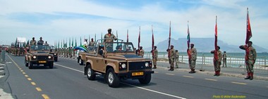 President Cyril Ramaphosa then took the salute from an impressive Military Parade, comprising some 8500 troops from each of the branches and a mechanised procession of vehicles including Ratels, Rooikat, G6 Self-propelled Howitzers, Olifant Tanks to name but a few. Marine Drive in Table View was lined with spectators who showed their enthusiasm with cheers and applause as the column rolled by.