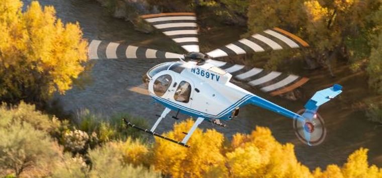 The MD 530F features MDHI's newest all-glass single-engine cockpit as well as a Fargo 21-gallon auxiliary fuel tank, Onboard Systems Talon LC Keeperless 3,600 pound Cargo Hook and Colorado Helicopters Side Hook Bracket, Cascade STC reduced cord leg fairing, Blue Sky Networks D1000A SATCOM aircraft tracker, high visibility main rotor blades, and wire strike protection.