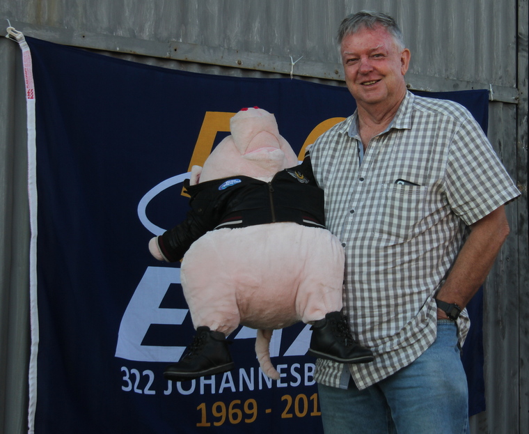 Peter Lea who flew from Pyramid Airfield in Barberton with Bacon van der Hoof the traveling pig who has more hours on his license that most pilots.