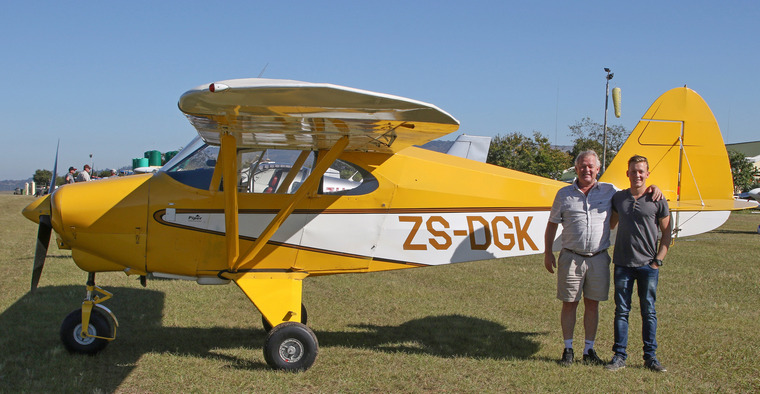 Stuart and Rob Beach and their lovely old Piper Tri-Pacer ZS-DGK.