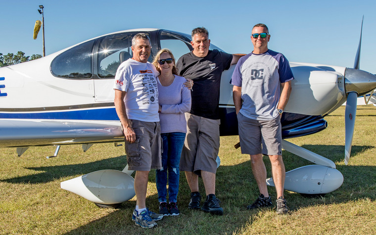 Posing in front of ZU-MEE are Mark and Christine Warren (ZU-TRG), Grant Beattie and Craig Mee (ZU-MEE). Craig's aircraft recently won the overall champion prize at the EAA Convention in Vryheid two weeks ago!