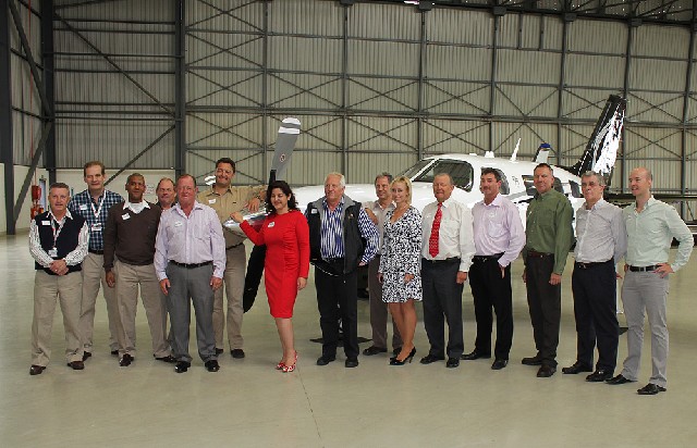 Mr JP Fourie, NAC's Executive Director of Aircraft Sales welcomed all the guests and Wished Piper aircraft a Happy birthday which coincided with the birthday of group Sales Director Mr Nigel Forrester. Nigel was presented with a birthday cake by Tanya Krause, the Marketing and Public Relations Assistant to mark the occasion.