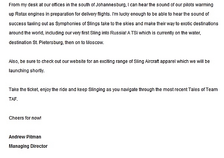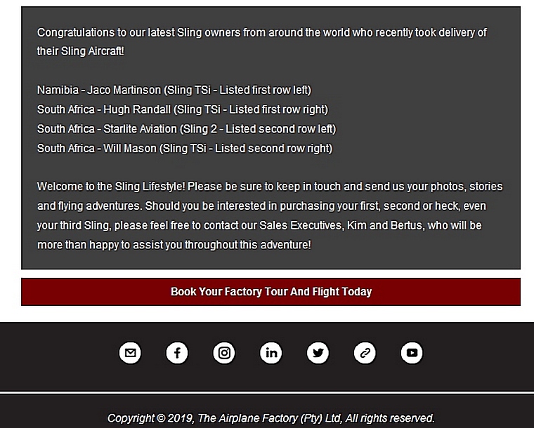 The Airplane Factory-Sling Squawk June 2019