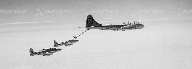 The first use of aerial refuelling in combat took place during the Korean War, involving F-84 fighter-bombers flying missions from Japanese airfields, due to Chinese-North Korean forces overrunning many of the bases for jet aircraft in South Korea, refuelling from converted B-29s using the drogue-and-probe in-flight refuelling system with the probe located in one of the F-84's wing-tip fuel tanks.