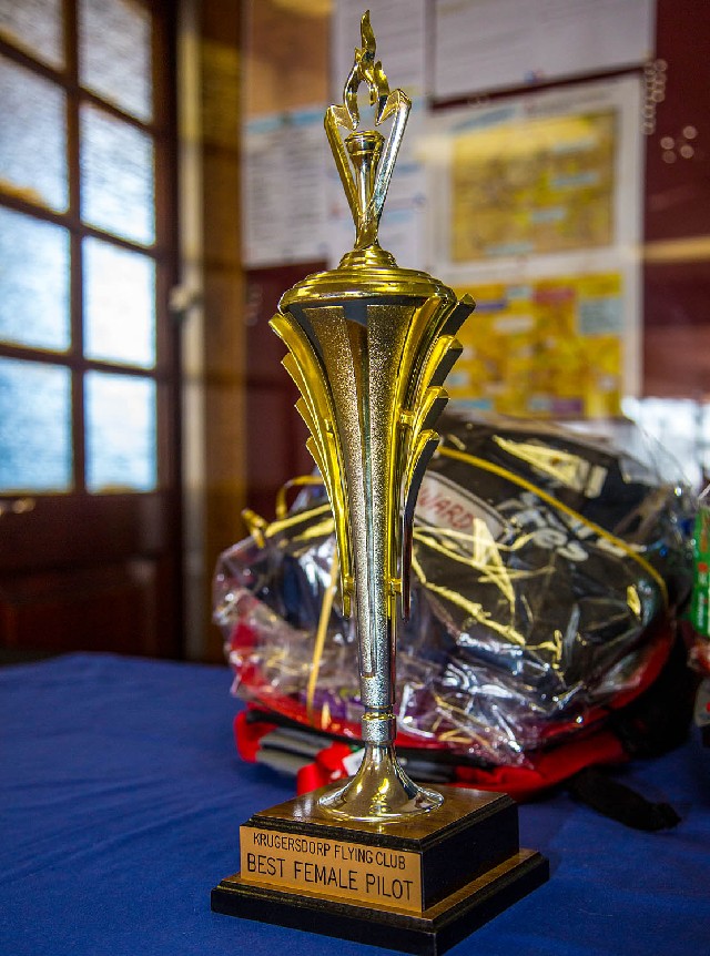 Member Lady Pilot Winner: Georgia Franklin in a C172 ZS-DPY with a total score of 27. Unfortunately, Georgia had already left before the prize-giving. Here is the trophy and prize package.